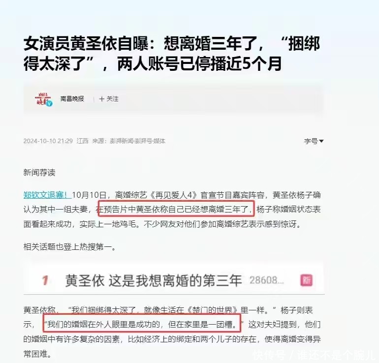 婚变在参加节目时,黄圣依和杨子的那点婚姻事儿,全暴露在观众眼皮子底下。